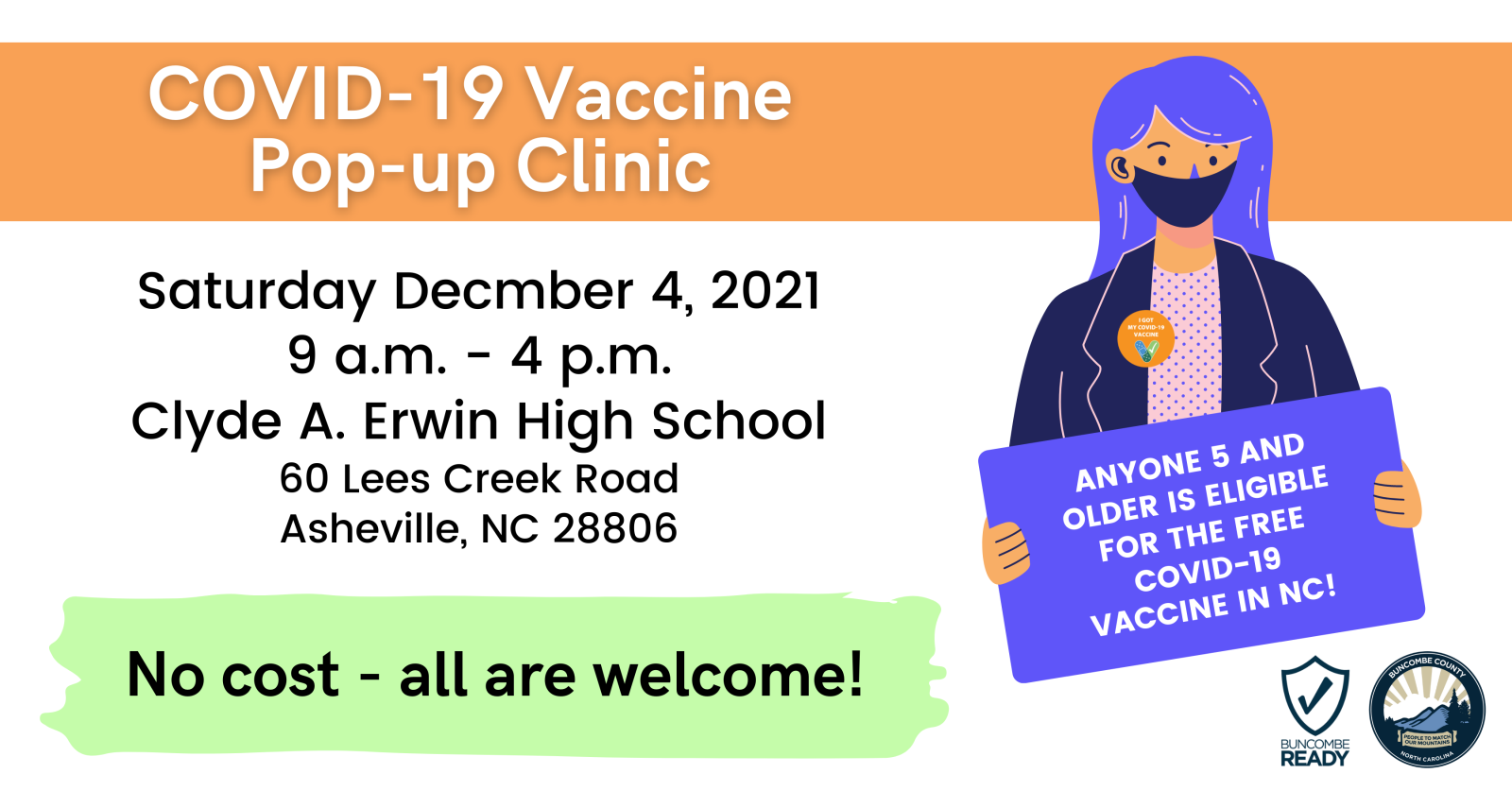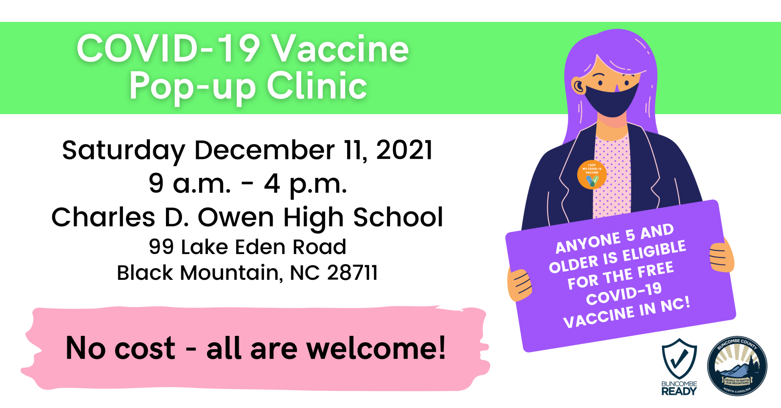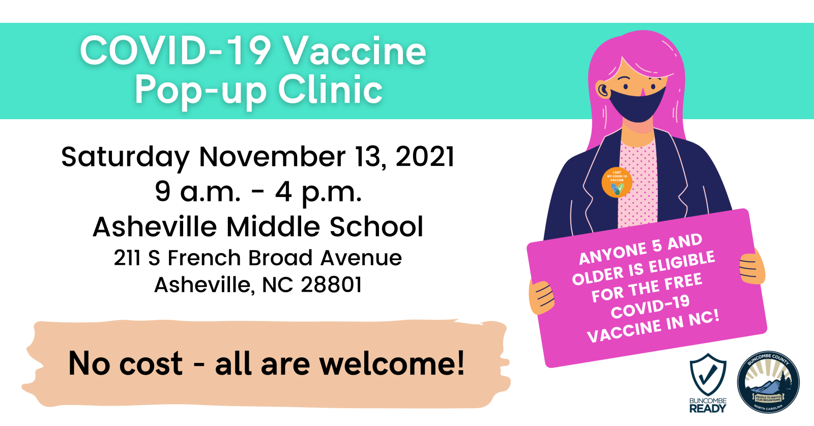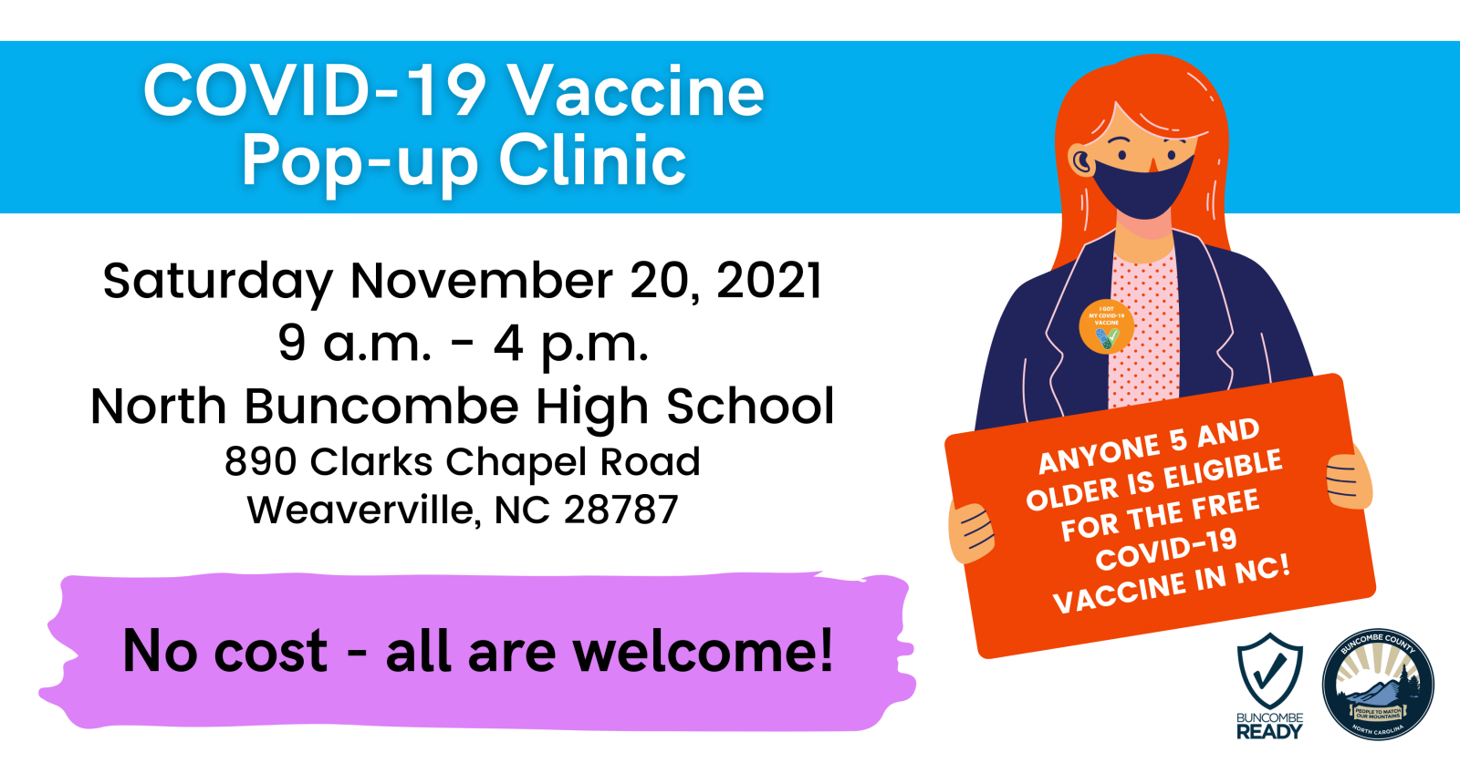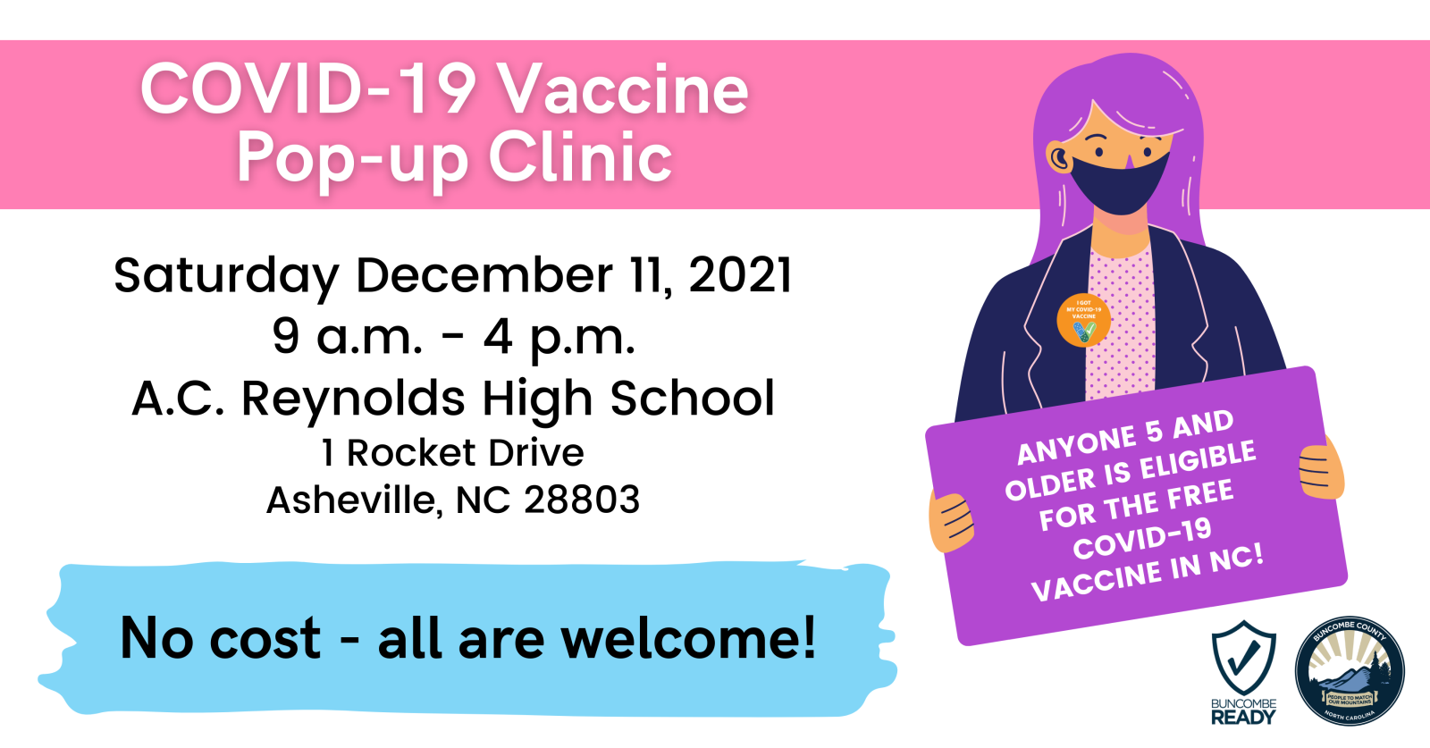 There are many ways for anyone 5 years of age and older to get a COVID-19 vaccination in Buncombe County. It is advisable to check with your doctor’s office or local pharmacy to see if the COVID-19 vaccine is available near you. While this is an exciting time for our children’s health, there will be many opportunities to access the vaccine. Please be patient with vaccine providers as they work to administer vaccines to this population.