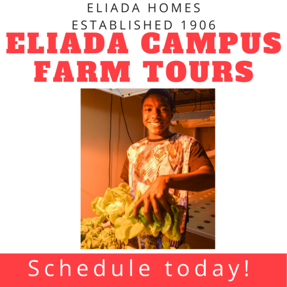 Join us at Eliada Home’s campus for a small group guided walking Farm Tour. Tours last approximately 1 hour. Participants will learn about outdoor and greenhouse growing practices, aquaponics, hydroponics, market gardening, corn maze production, and learn about our Animal Therapy program.