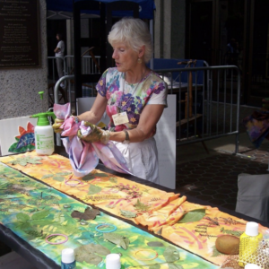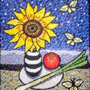 Louise Glickman’s storytelling is revealed through weaving of nets and textures where lines move over, under and around using bits of fabric, paint and plant materials. Her highly textural works are largely connected through her own life experiences and a love of nature and travel. Select pieces reveal her special interest in understanding the yin and yang of countries and cultures that have informed her worldview, from her childhood in New Orleans to travel with the Penland School to Cuba, Japan and Denmark.