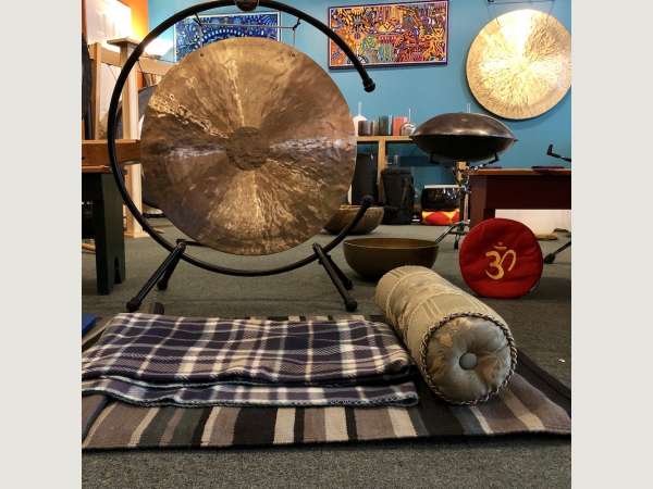 Weekly sound healing sessions are held here at Skinny Beats Sound Shop (4 Eagle St – Asheville, NC) every Saturday and Sunday at 11:00 AM. We lay yoga mats on the floor and lower the blinds to create a meditative space that helps you clear your mind and relax to our unique soundscape of crystal singing bowls, expansive gongs, handpans, didgeridoos, rainsticks, and more. We are currently limiting public sessions to 10 people. Please call for info regarding private sessions.