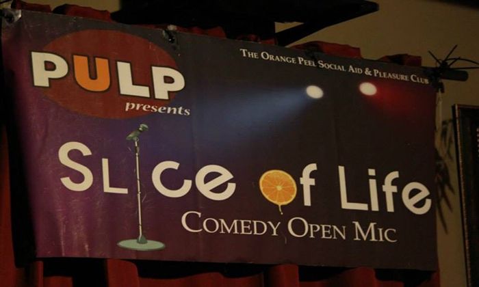 Slice of Life Comedy presents comedy open mic night at The Orange Peel’s basement bar, Pulp Lounge in Asheville, NC.